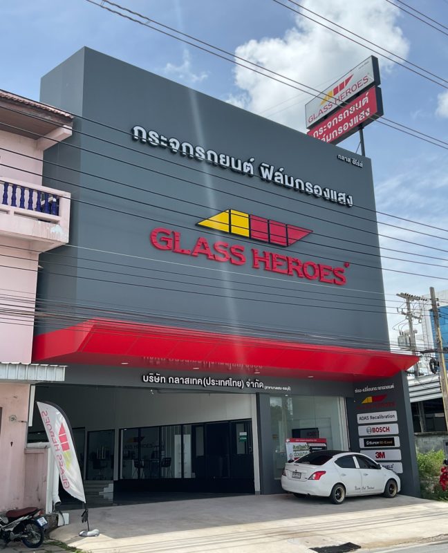 GLASS HEROES ให้บริการเปิดสาขาที่ 9 อย่างเป็นทางการที่ บางแสน-ชลบุรี เพื่อให้บริการครบจบในที่เดียว ทั้งซ่อมกระจกรถยนต์ เปลี่ยนกระจกรถยนต์ และตั้งค่าเซนเซอร์กล้อง ( Recalibrate ) รวมถึงบริการอื่น ๆ เช่น ติดตั้งฟิล์มกรองแสงแบรนด์ชั้นนำในไทย ทั้ง Ray-Sheild Hi-Kool 3M Laminar และอื่น ๆ